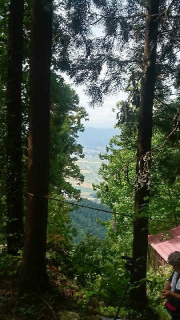 社殿前のしめ縄の向こうに少し飯山方面が望めます。